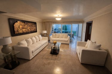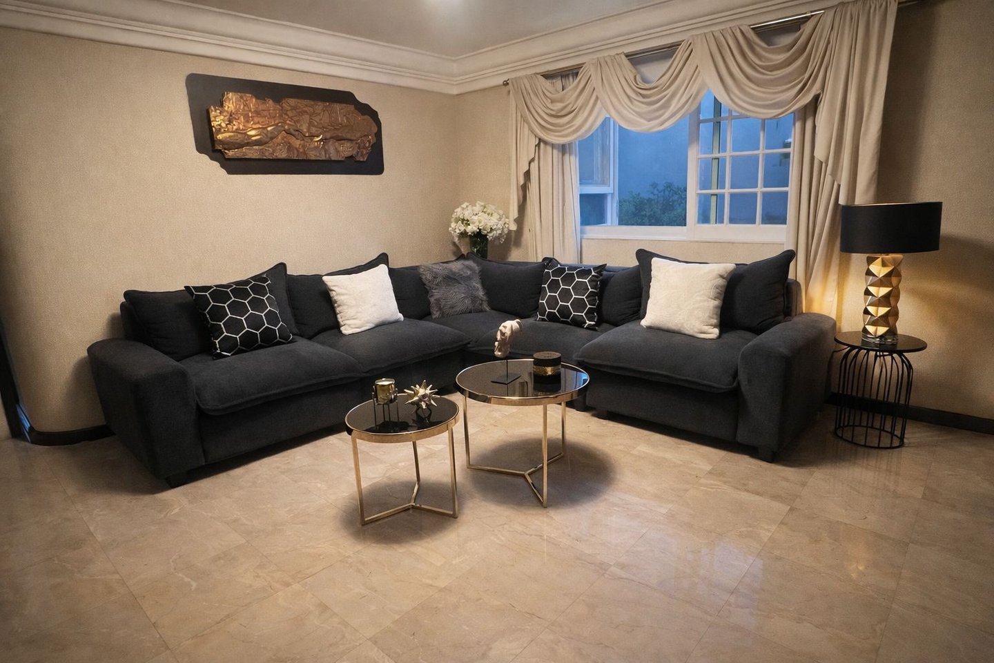 Sala principal con mobiliario de líneas limpias y materiales que elevan la estética del espacio.